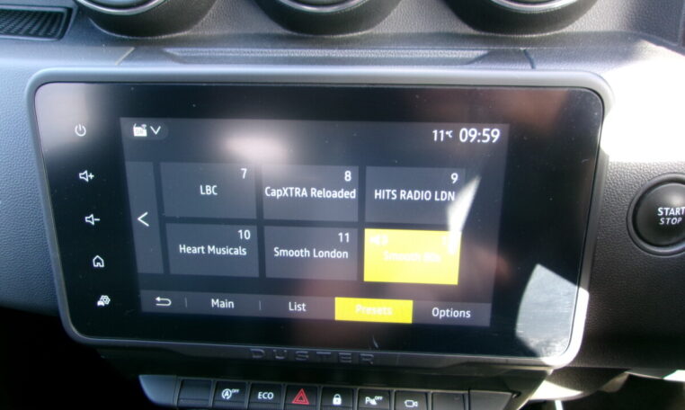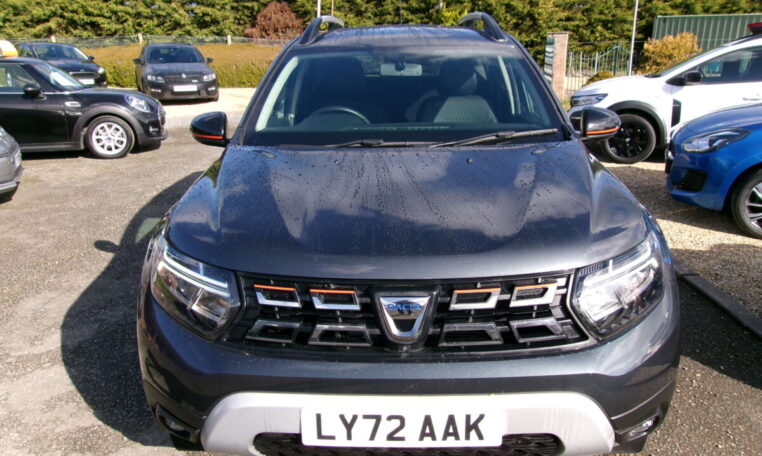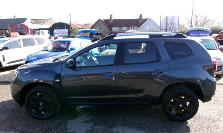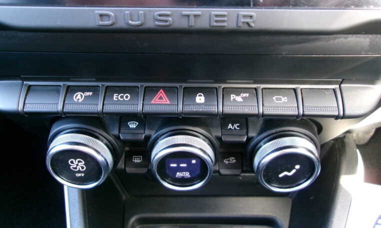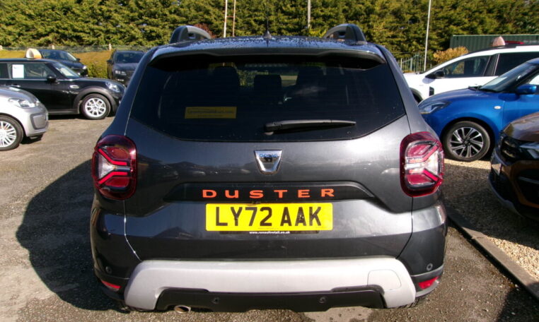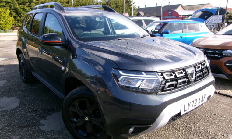 17in Alloy Wheels – Black, 3-Point Rear Seatbelts x3, 3-Speed Front Windscreen Wipers, 7-Function On-Board Computer, 8in Media Nav and Smartphone Replication with Navigation, ASR – Traction Control with ESC – Electronic Stability Control, Acoustic Windshield, Air Vent Surrounds, Airbags – Driver, Airbags – Front Passenger with Deactivation Function, Airbags – Front Side, Anti-lock Braking System – ABS and Emergency Brake Assist – EBA, Automatic Air Conditioning, Backlighted Steering Wheel, Blind Spot Warning, Body-Coloured Front and Rear Bumpers, Boot Light, Centre Console Fascia – Matt Black, Centre Console Surround, Child Locks in Rear Doors, Cruise Control and Speed Limiter, DRL – Daytime Running Lights, Dacia Plug and Radio – MP3 – USB – Bluetooth – DAB – Steering Wheel Control, Dark Glass on Lateral Rear Windows, Decorative Insert on Door Panels – Front, Decorative Insert on Door Panels – Rear – Piano Black, Door Handles – Body Coloured, Door Mirrors – Heated and Electrically Adjustable, Door Mirrors – Painted Grey Quartz with Orange Detailing, Door Open – Visual and Audible Warning, Driver and Passenger Seatbelt Not Fastened – Visual and Audible Warning, Dusk Sensor, ECO Mode, Electric Front Windows with Impulse on Drivers Side, Electric Windows – Rear, Fabric Decorative Insert on Front and Rear Door Panels, Front Door Sill Protection Strip, Front Fog Lights, Front Grille with Hot Stamping, Front Passenger Reading Light, Front Seatbelt Pretensioners, Gear Lever Cap Insert – Satin Chrome, Gear Shift Indicator, Glovebox Light, Headlights – Rear Lights – Front and Rear LED Lights – Y-Shape, Heated Rear Window, Heated Seats, Height and Depth-Adjustable Steering Wheel, Height-Adjustable Drivers Seat, Height-Adjustable Front Seatbelts, Height-Adjustable Front and Rear Headrests, High Centre Console with Driver Armrest, High Level Third Brake Light, Hill Start Assist, ISOFIX Points for Child Seats in Both Outer Rear Seats, Interior Door Handles – Front and Rear – Satin Chrome, Keyless Entry, Lower Steering Wheel Insert – Satin Chrome, Lumbar Seat Adjustment, Map Pockets on Front Seatbacks, Multiview Camera, Power Assisted Steering, Rear Parking Sensors, Rear Passenger Reading Light, Rear Wash and Wiper, Remote Central Locking, Rev Counter, Roof Bars – Longitudinal with Duster Inscription, Roof Spoiler – CO2 Efficient, Seats – 60-40 Split Folding Rear, Side Sills – Black, Skid Plates – Underbody Protection, Soft Feel Leather Steering Wheel, Steering Wheel – Chrome Logo Surround, Sunvisor with Vanity Mirror – Passenger, Tailgate Trim with Duster Inscription, Thatcham Approved Engine Immobiliser, Tyre Inflation Kit, Tyre Pressure Monitor, Part Exchange Welcomed- 5 Seats.