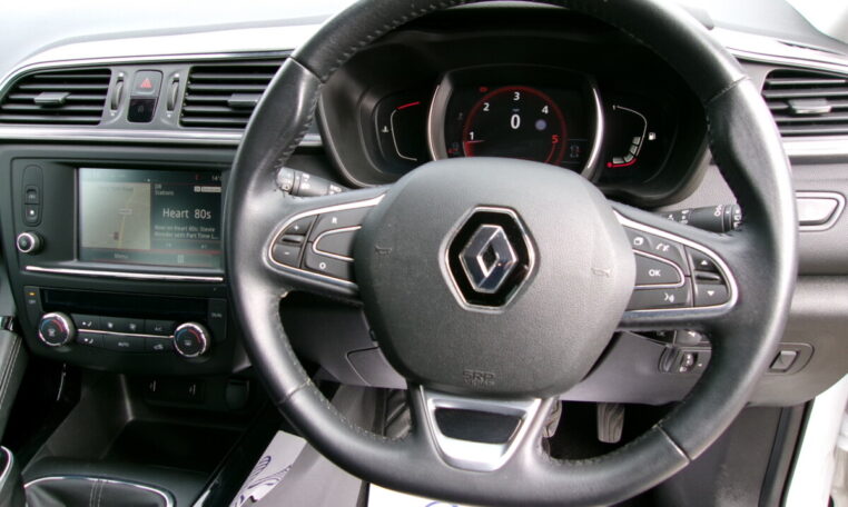 17in Alloy Wheels – Athena, 3 Point Inertia Reel Seatbelts, ABS with EBD – Electronic Brake Distribution and Emergency Brake Assist, Accessory Power Point, Adjustable Dashboard Illumination, Air Recirculation, Airbags – Drivers Two Stage Auto Adaptive, Airbags – Front Lateral, Airbags – Front Passenger Deactivation, Airbags – Front Passengers Two Stage Adaptive, Airbags – Front and Rear Curtain, Android Auto, Anti-Drill Door Locks and Ignition Barrel, Apple CarPlay, Arkamys 3D Sound 4x35W DAB Radio with Bluetooth and USB Connection, Armrest – Front Centre, Assisted Parking Brake, Automatic Headlights and Windscreen Wipers, Body Sided Moulding with Chrome Insert, Chrome Detailing, Chrome Window Surrounds, Climate Control – Automatic Dual Zone, Climate Pack, Courtesy Lights – Rear, Cruise Control with Speed Limiter, Daylight-Nightlight Rearview Mirror, Daytime Running Lights – LED, Display – Digital Speedometer – 7in TFT Screen, Door Handles – Body Coloured – Front, Door Mirrors – Body Coloured Shell, Door-Boot Open Warning Light, Driver and Passenger Seat Belt Undone Warning Audible Alert, Dust Protection Kit, ESP – Electronic Stability Programme with ASR – Anti-Skid Regulation and UCL – Understeer Logic Control, Eco Mode, Electric Windows – Front, Electric Windows – Rear, Electronic Parking Brake, Exterior Temperature Sensor, Extra Tinted Windows – Rear and Tailgate, Fingertip Audio System Remote Control, Fleet Management, Fog Lights with Cornering Function, Front and Rear Towing Rings, Full Flat Floor, Glovebox Light, Gravel Protection Kit, HSA – Hill Start Assist, Headlights – Halogen, Headrests – Front Fully Adjustable, Headrests – Rear Height Adjustable x3, Heated Rear Windscreen, Heating Ducts to Feet of Rear Passengers, Height Adjustable Front Seat Belts, ISOFIX – Child Seat Fixing Points – Outer Rear Seats, Indicators with Side Repetitions, Insurance Approved – Category 1 Alarm System and Immobiliser, Integrated Fuel Filler Cap, Interior Courtesy Light Controlled By All 4 Doors, Keycard – Hands Free, Low Fuel Level Warning Light, Luggage Compartment – Illumination, Multi Position Trunk Floor, Oil Level Gauge, Pollen Filter, Power Assisted Steering, Protective Rear Brake Disc, RAID – Renault Anti Intruder Device, Rain Protection Kit, Reading Lights – Driver and Front Passenger, Rear Seat Belt Undone Warning Audible Alert, Rev-Counter, Roof Rails, Satellite Navigation – R-Link v2 System, Seats – 3-Seat Rear Bench, Seats – 60-40 Split Folding Rear, Seats – Drivers Lumbar Adjustment, Seats – Height Adjustable Front Seatbelts with Double Pretensioners, Side Impact Protection Bars, Steering Wheel – Leather, Steering Wheel – Rake and Reach Adjustable, Sun Visor – Mirror Without Light, Superlocking, Trip Computer, Tyre Inflation Kit, Tyre Pressure Monitoring System, USB Connection, Visio System, Windscreen Wipers – Front with Variable Speed Adjustment, Windscreen Wipers – Rear,5 Seats.